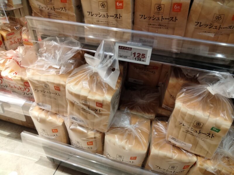 食パン1個が120円を超えてくると、さすがに高いと感じます。食パンだけを仕事の帰りに頼まれて買って帰ることも多いので、そういうときは98円のお店に立ち寄るようにしています。ライフは深夜までの営業しているのがウリで、23時前に立ち寄ったと考えれば、手に入るだけでもありがたい場合はあります。